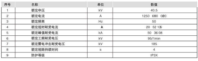 The main technical parameters of vacuum switchgear